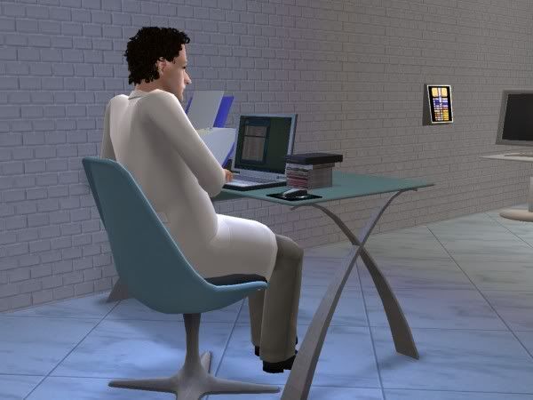 noch im Labor und hackte Daten in den Computer. Lars war angesäuert,